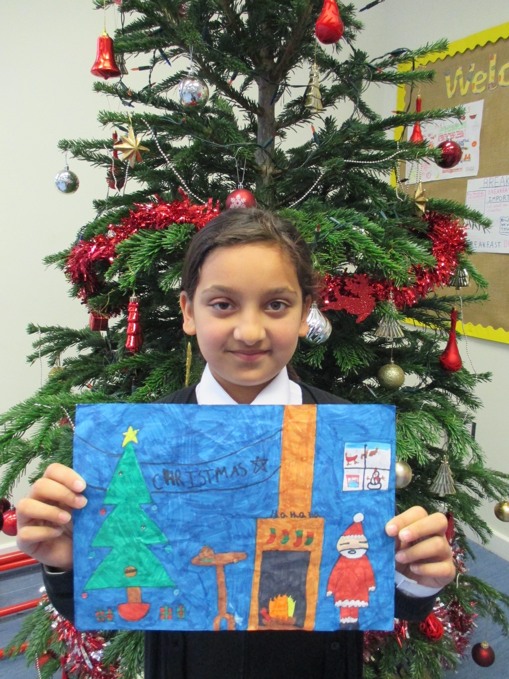 Picture shows: Zunairah from Bemrose School showing her Christmas card design