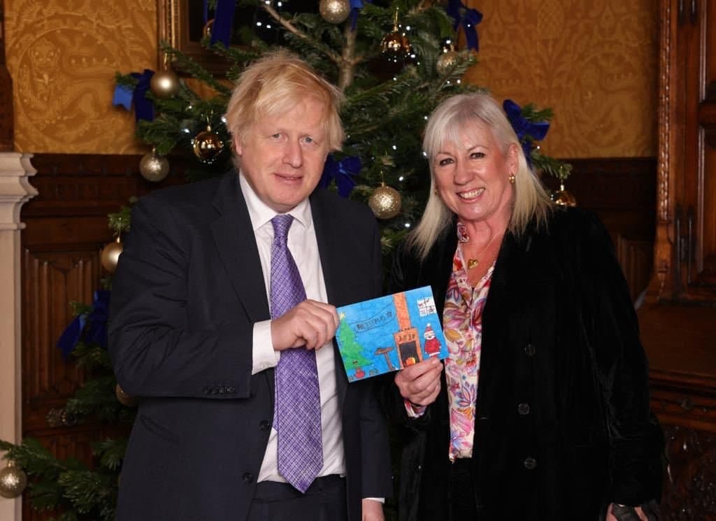 Picture shows: Amanda Solloway (right) giving Borris Johnson (left) the Christmas card designed by Zunairah from Bemrose School.