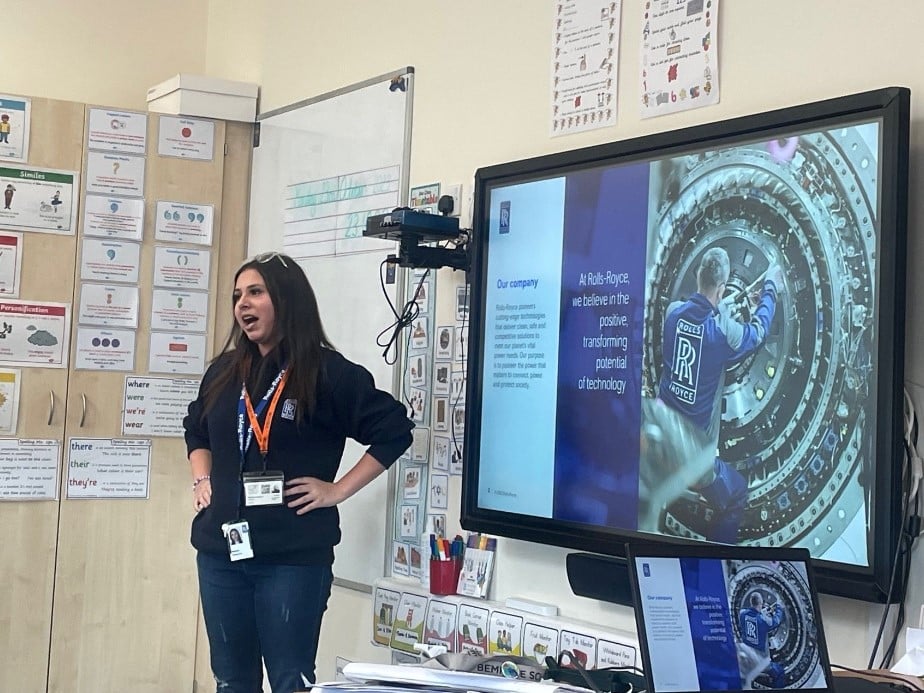 Bemrose School Alumni Natalie Dankova returned to the classroom to talk to Year 5 pupils as they finished their topic for the half term on aerospace and aviation. Natalie is an Aerospace Fitter at Rolls-Royce and is on the Derby company’s Advanced Apprenticeship programme.