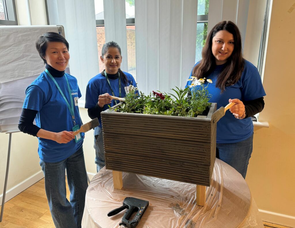 Planters painted by Lubrizol volunteers were made by YMCA residents for use in the charity’s garden, through its Men in Sheds project. Wood for the geodesic dome was donated by Derby Timber Supplies.