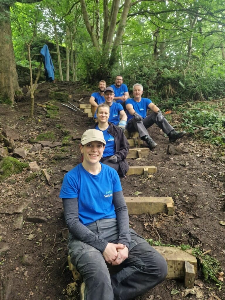 A team from Hazelwood-based science company Lubrizol have been helping summer visitors to the newly restored Aqueduct Cottage enjoy the peace of the surrounding Lea Wood after spending hours heaving gravel and wooden planks to make new steps taking people up a steep bank.