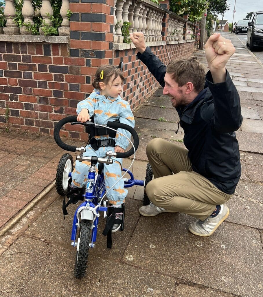 Lola undertook her cycling challenge by using her trike to cycle round the block every day with her parents.