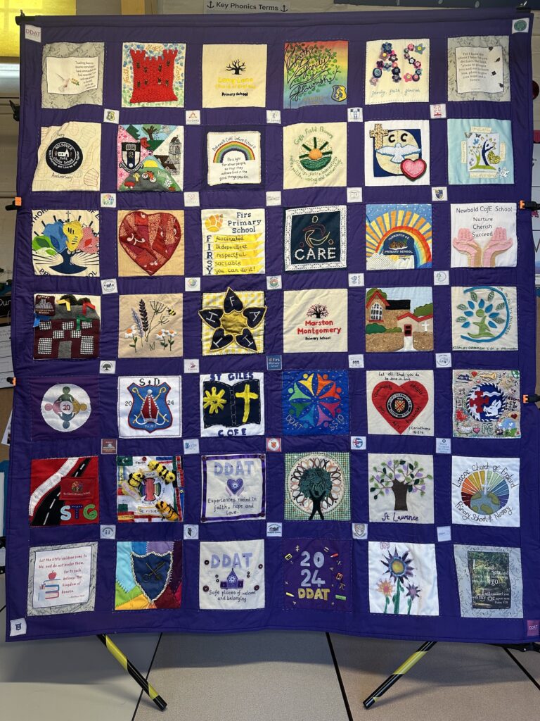 Paula, who oversees Firs Primary School and, more recently, Stanley Common Church of England School – both part of the Derby Diocesan Academy Trust (DDAT) – created a quilt made up of patches from 33 schools within the academy.