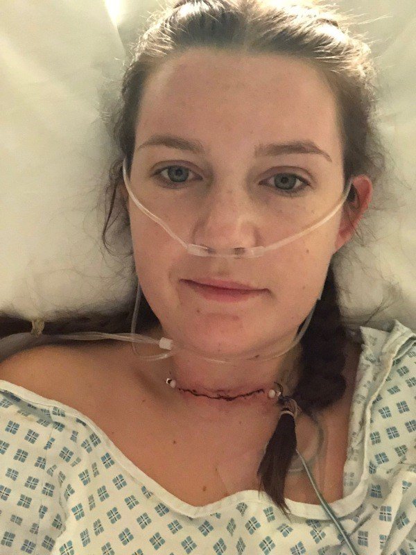 Hollie was booked in for an operation at Royal Derby Hospital where a second lump was discovered in her neck, and she ended up undergoing two gruelling operations. Thankfully, the cancer had not spread to her lymph nodes, and she did not require further treatment.