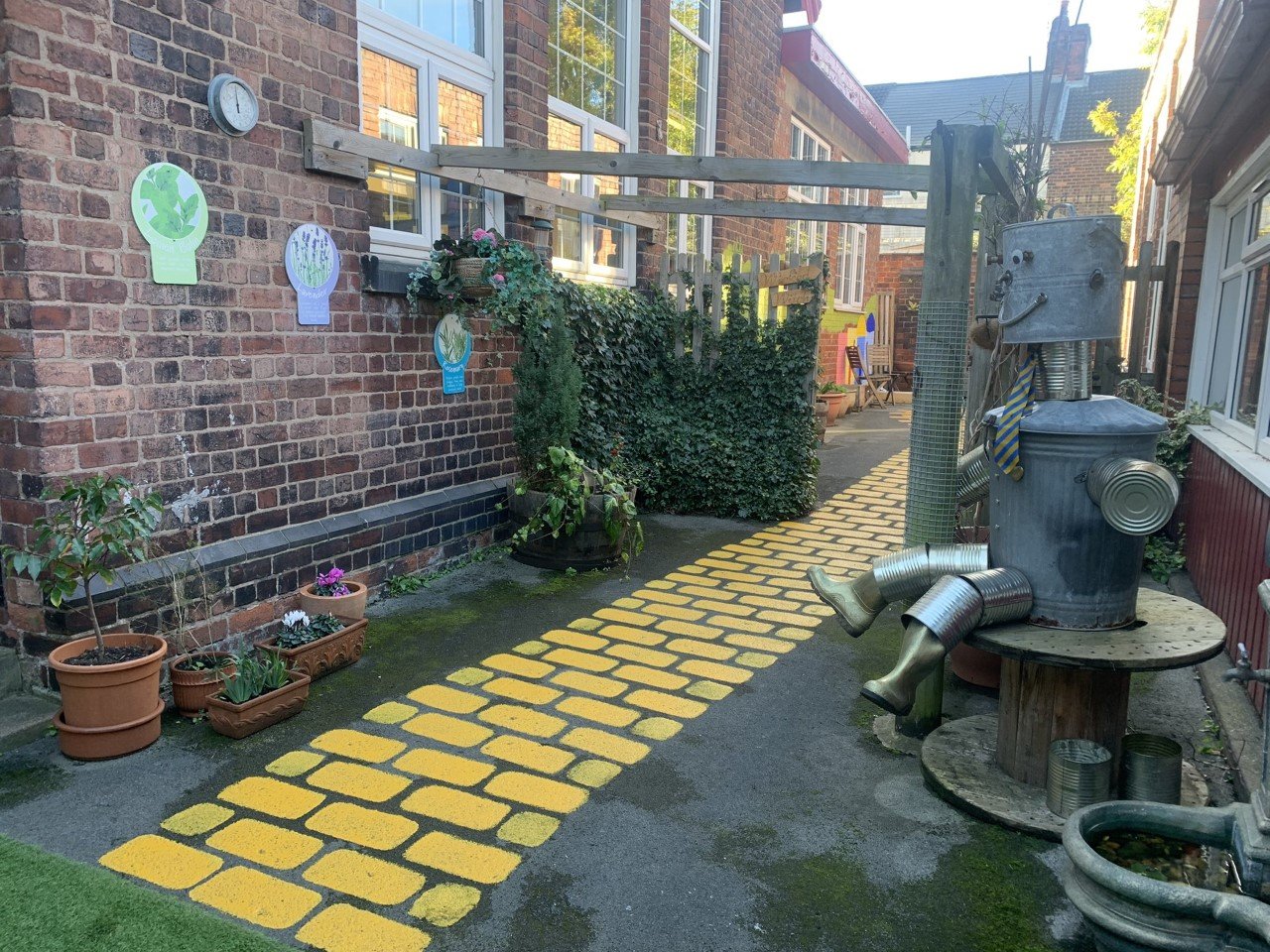 “The courtyard was fairly ordinary and needed brightening up, so we came up with an idea to paint it like The Yellow Brick Road and to keep the theme of The Wizard of Oz running throughout the area.