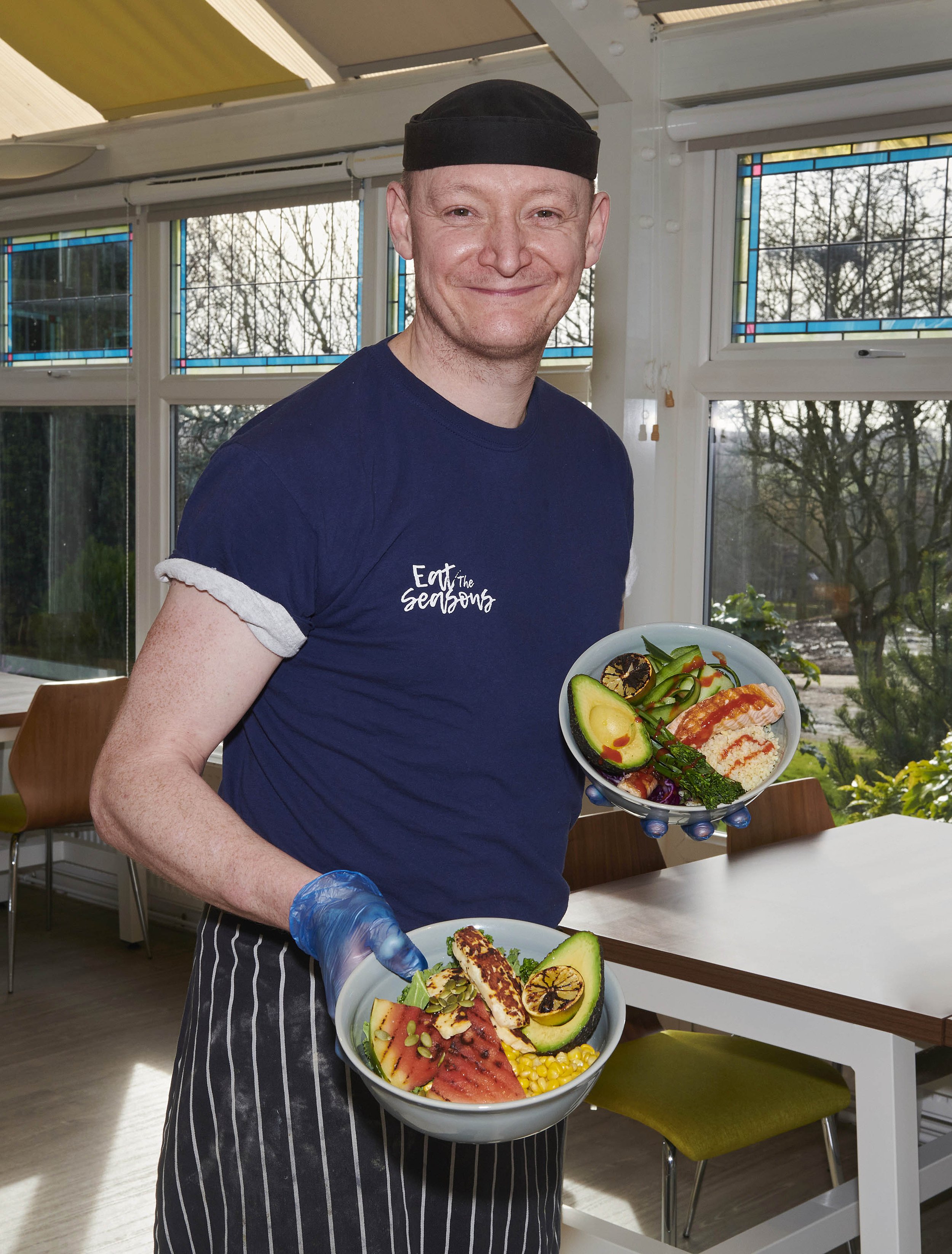 Picture shows: Jim Grieveson, chef manager at Lubrizol’s Hazelwood site, for Wilson Vale catering, with ‘Buddha Bowls’, the subject of one of his talks to Wellness Wednesdays. A Buddha bowl features five components: whole grains, vegetables, protein, a dressing, and ‘sprinkles’, which can include nuts and seeds.