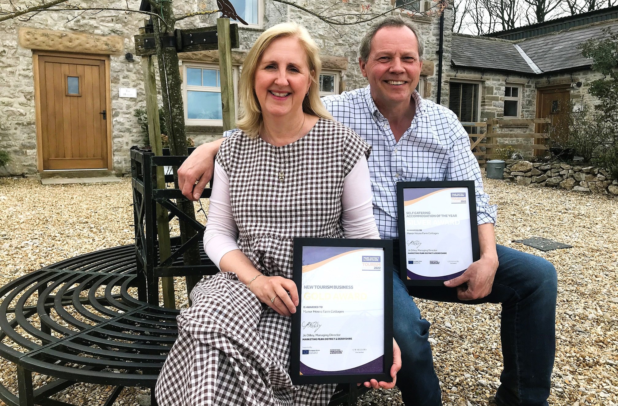 John and Julia Hackett, owners of Manor House Farm Cottages in Sheldon, near Bakewell, have now been entered into the national Visit England Awards for Excellence 2022 after winning gold and silver awards of this year’s Peak District and Derbyshire tourism awards.