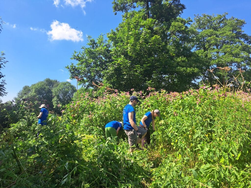 The Trust works with different companies in the Derby area who come and help beat back the huge problem of Himalayan Balsam, so that biodiversity in the area can have a better chance.
