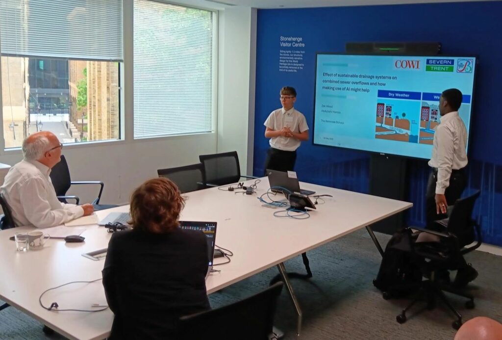 As part of a work placement with global engineering consultancy COWI, year 10 students Zak Wood and Abdullahi Hamza from The Bemrose School, created an innovative presentation exploring how artificial intelligence (AI) could be used to reduce combined sewer overflow (CSO) spills — a major environmental issue where heavy rainfall causes sewers to discharge a mix of wastewater and stormwater into rivers and seas.